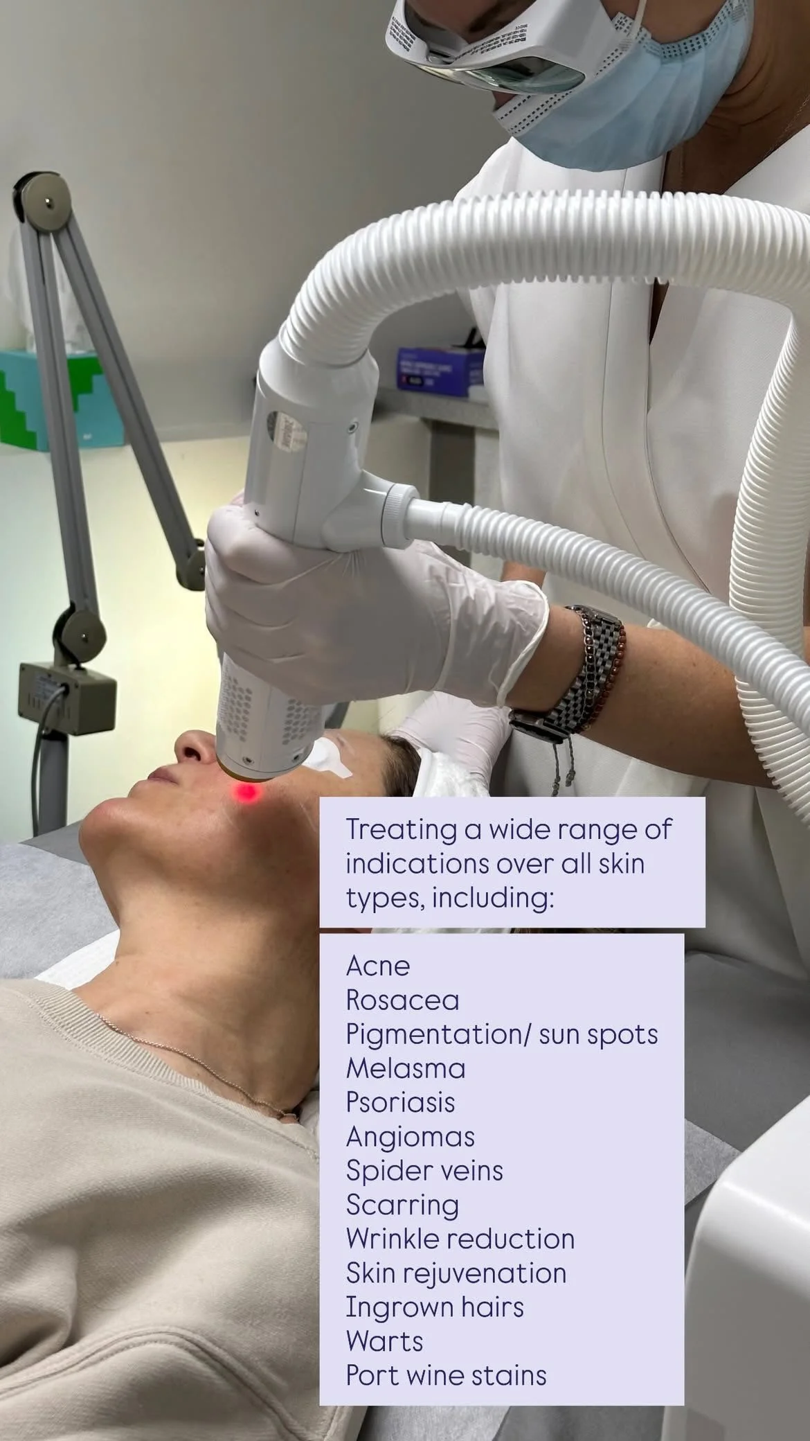 The laser targets sun spots and hyperpigmentation, fading these imperfections and revealing a clearer, more uniform complexion.